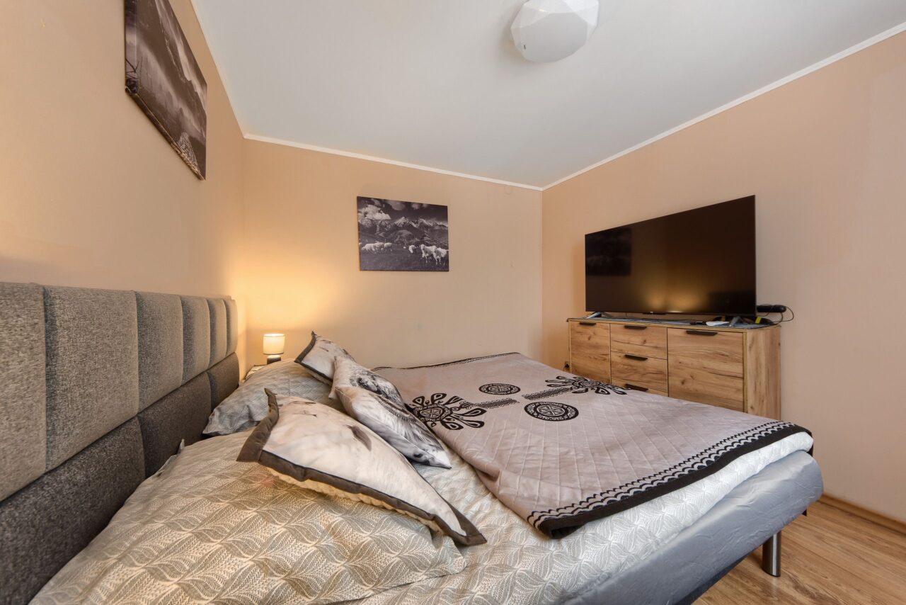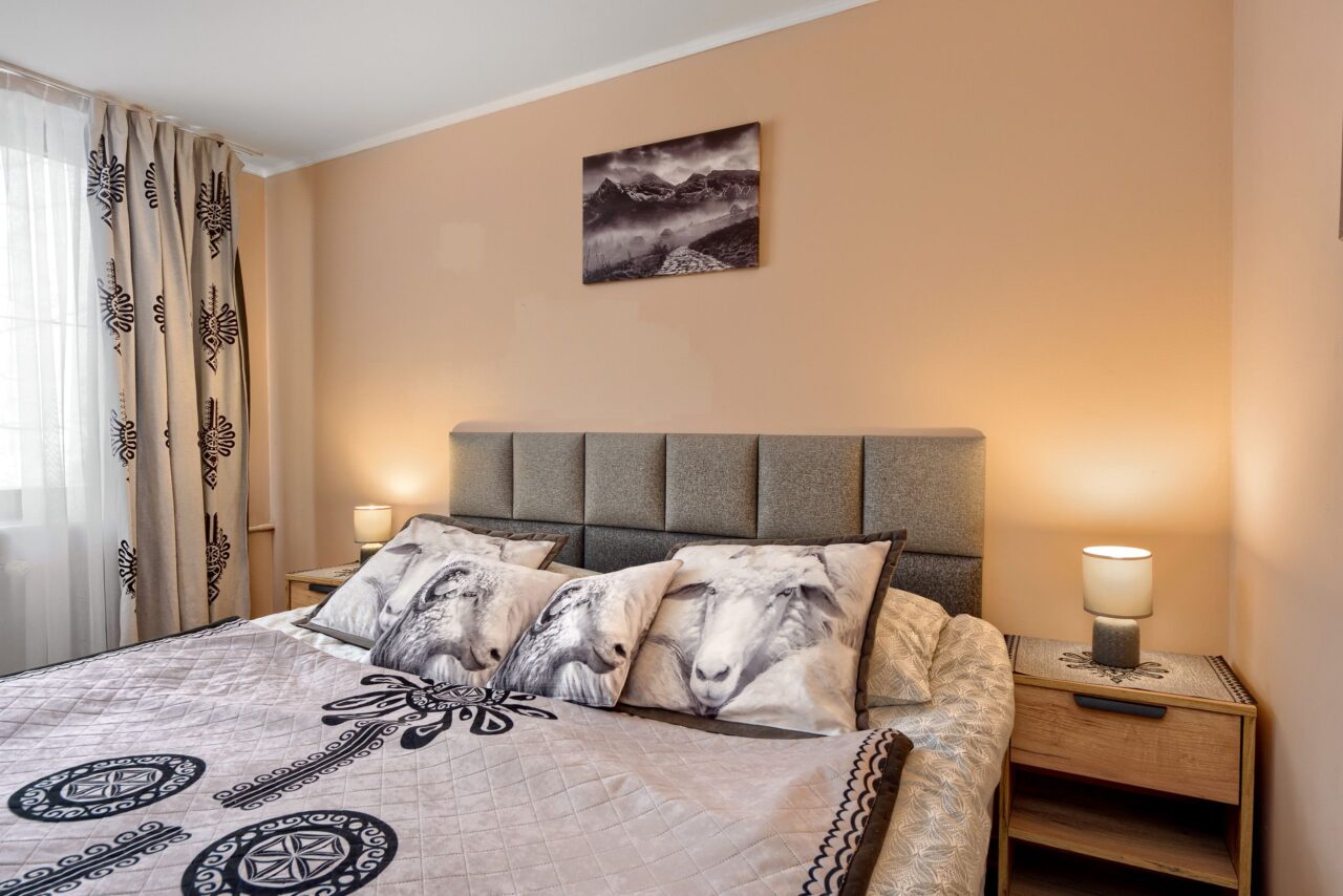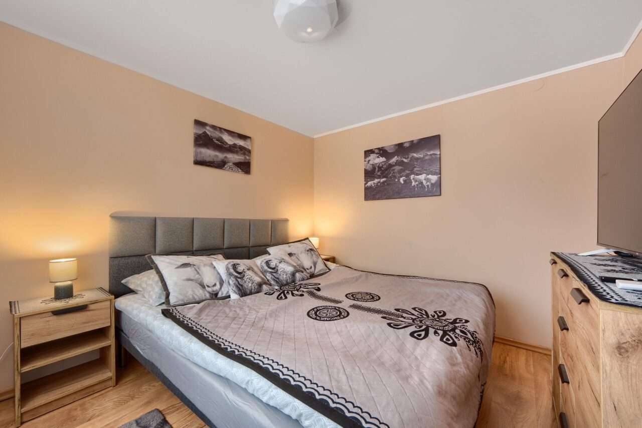 APARTAMENT STANDARD (30 m2) z odnowionym wnętrzem. Apartament posiada osobną sypialnię z komfortowym łóżkiem typu king-size 180X200 z możliwością rozłączenia łóżek, telewizorem SMART TV 45 cali. Osobne pomieszczenie wraz z kuchnią w pełni wyposażoną, i komfortową sekcją wypoczynkową w tej części (jedno łóżko dodatkowe dla 3 osoby). Łazienka z prysznicem oraz toaleta.